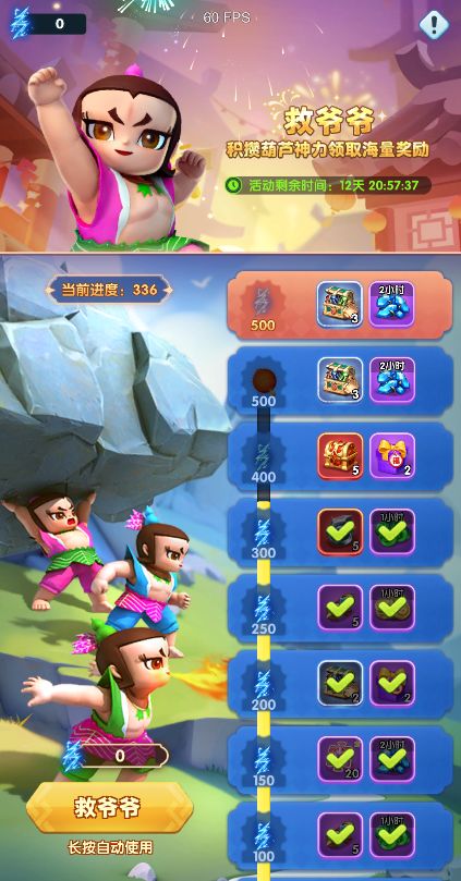 16. 救爷爷:活动期间,使用葫芦神力可增加救爷爷的进度,完成对应阶段时可以获得阶段奖励,达到最高进度后,可以增加葫闹好礼的进度。