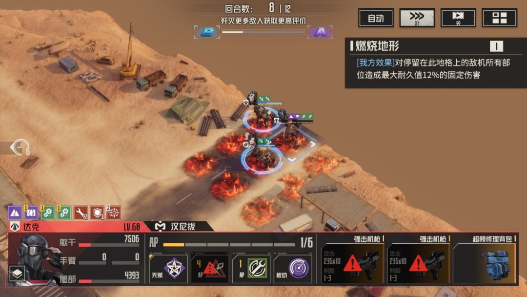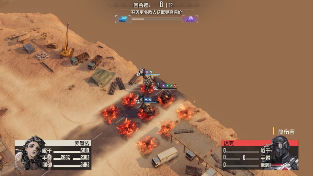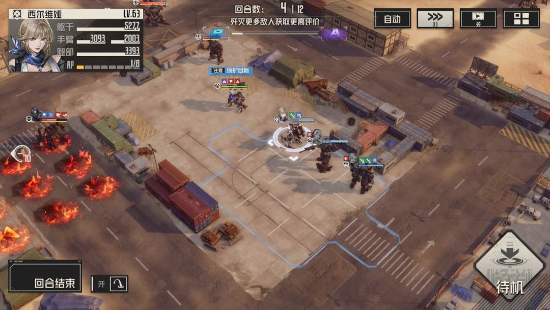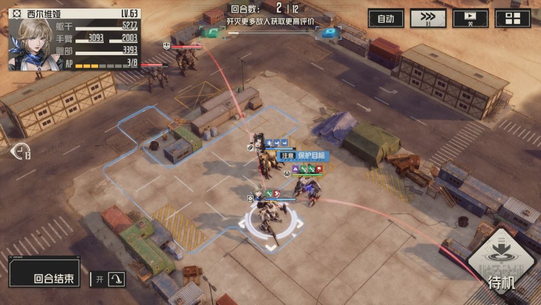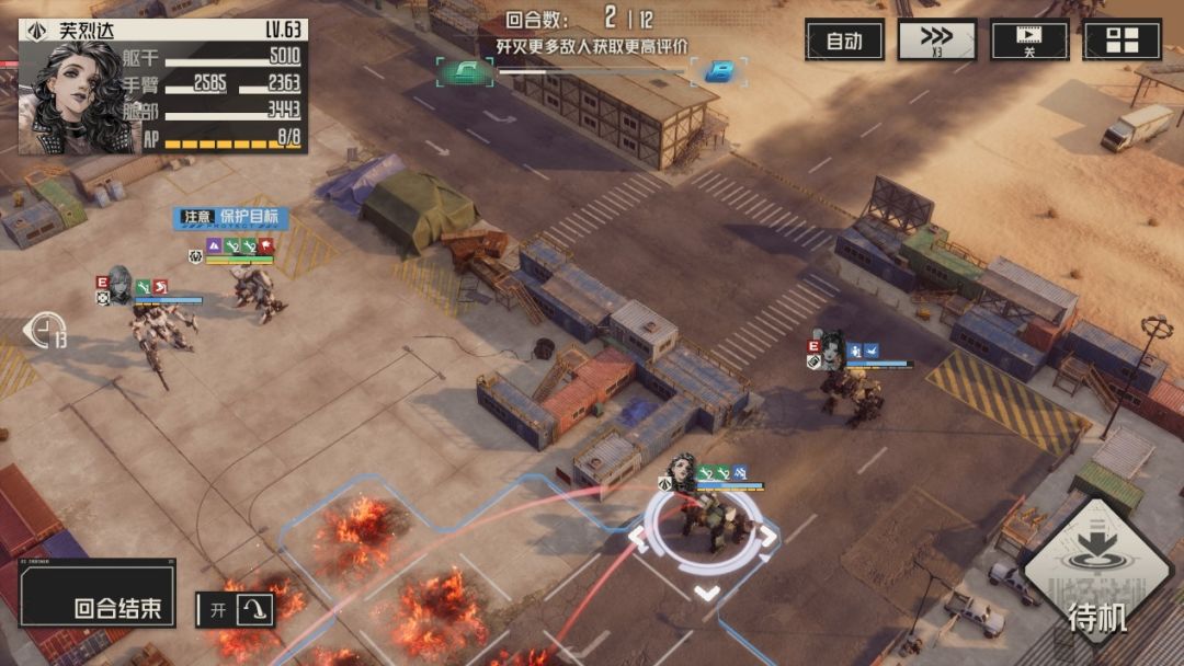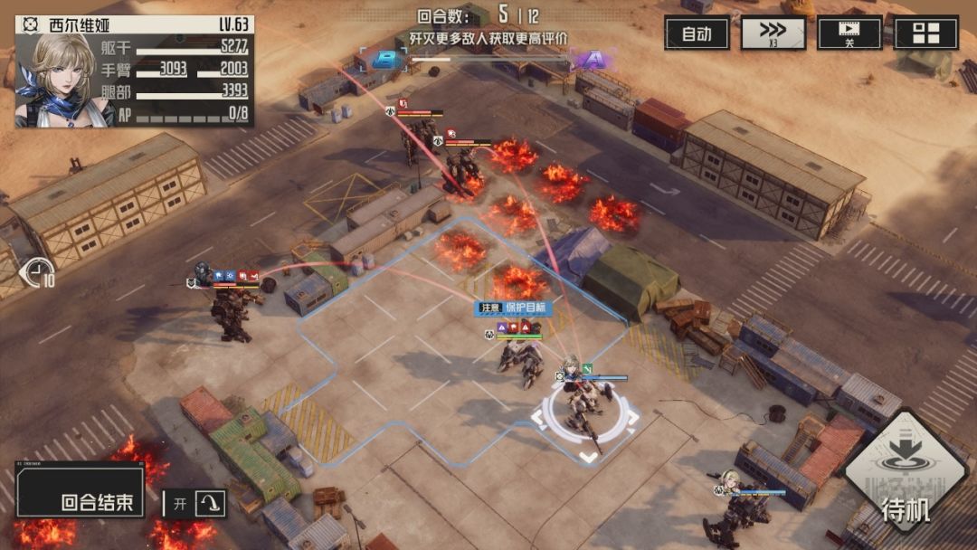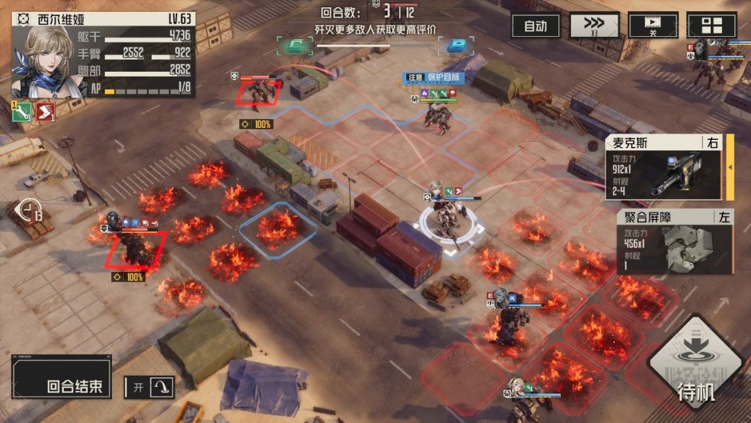 西尔维亚补刀,注意要把格斗头目腿部破坏,否则下回合自律机兵会被消灭