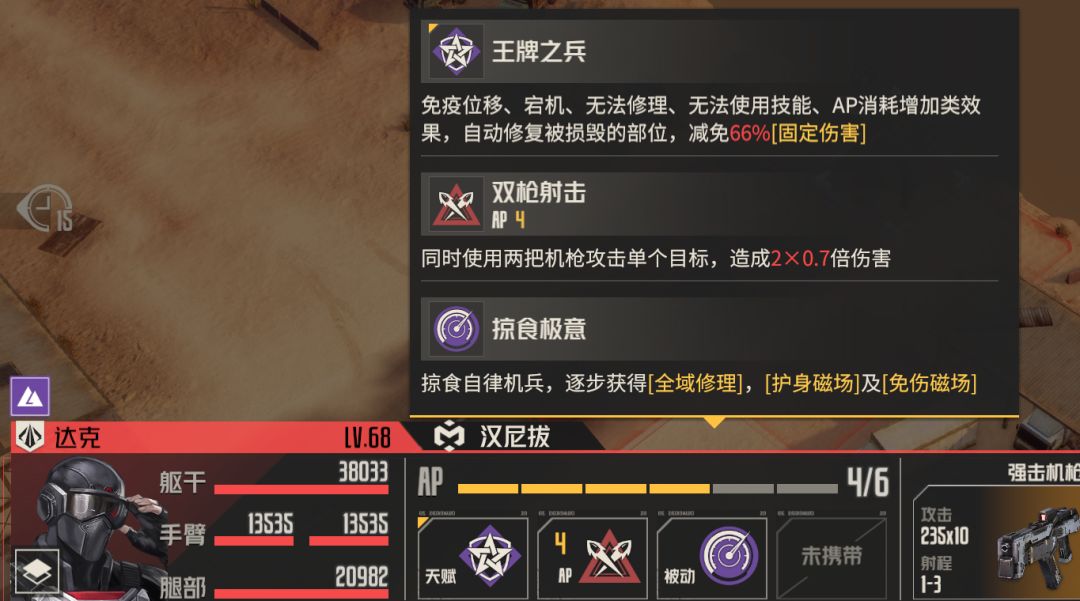 达克,boss,随着回合数增加,逐渐夺取自律机兵能力,使自身获得全图治疗能力,同时给场上敌人叠加不屈和免伤效果