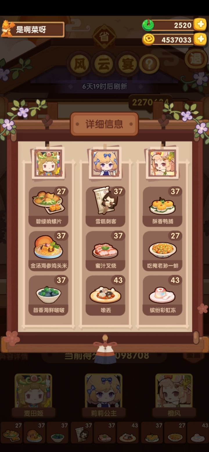 P2-3是具体阵容,没有麦田姬和玫玫君可以试试新池的桂小乌(我还缺点符文,没修满),没有三文鱼奶油汤的可以直接换成薄荷牛肉卷之类的炒煮菜,不会差太多的