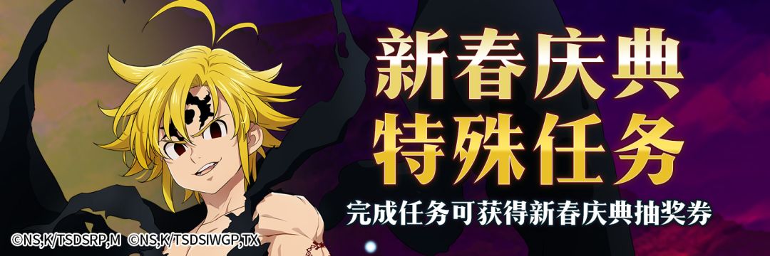 活动介绍:活动期间,完成游戏中各角色布置的新春庆典任务可获得SSR必得券、行动力药水、觉醒石、UR宝物箱、铁砧等各种道具,完成全部任务还可额外获得新春庆典抽奖券×20。