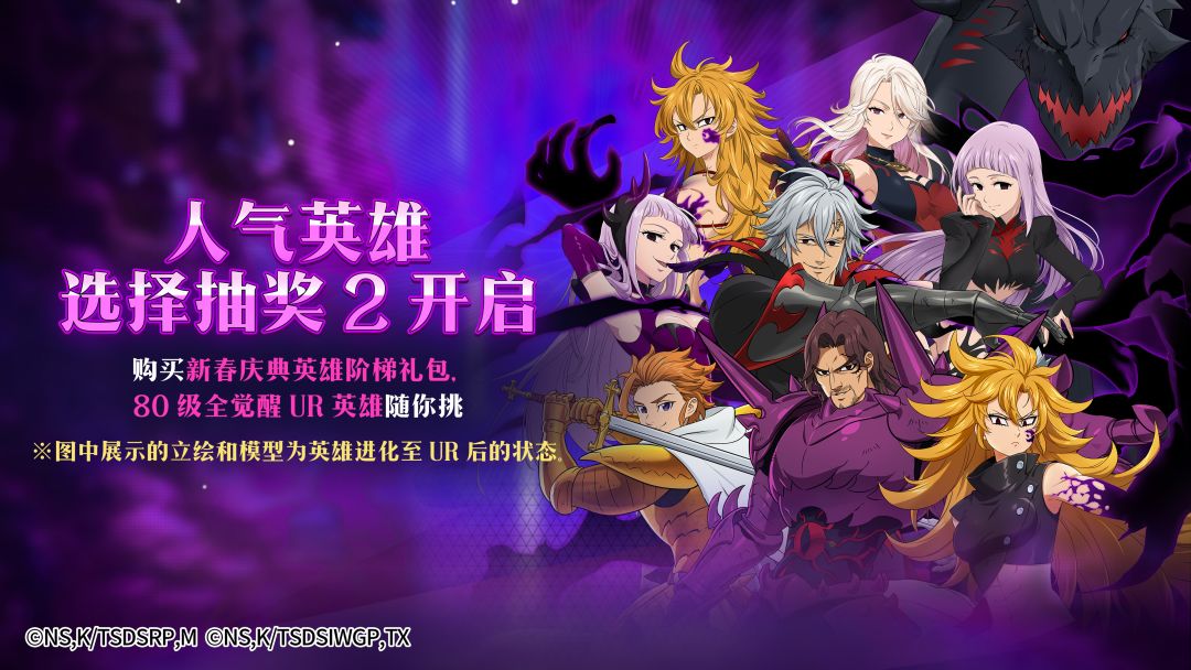 活动介绍:活动期间内,购买新春庆典英雄阶梯礼包(礼包II需购买礼包I后解锁),即可自选指定卡池范围内的一位80级UR全觉醒英雄哦(若选择已拥有且等级>80级的英雄,则只能获得英雄硬币,无法全觉醒,不会下调英雄等级和返还养成材料)。