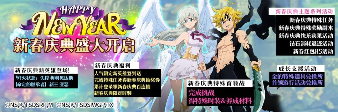 活动介绍:七人传奇FES限定新SSR英雄「歼灭状态」失控 梅利奥达斯登场!!同时【圣战的战士】女神族伊丽莎白、「实像分身」失落灾厄 梅利奥达斯复刻登场!获取概率均限时提升。活动期间我们还准备了特别的红利点数奖励,千万不要错过哦。