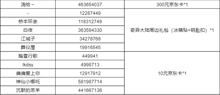 随机抽5位参与活动的友友送价值30元的奇异大陆周边礼包(冰箱贴+钥匙扣)*1
