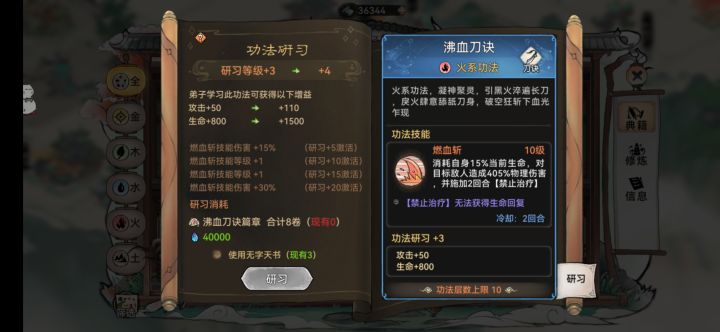 新来的小伙伴非常容易忽视这块,藏经阁去研习功法不单增加生命攻击等属性,每5级还会有额外伤害或者技能等级提升,千万不能忽略
