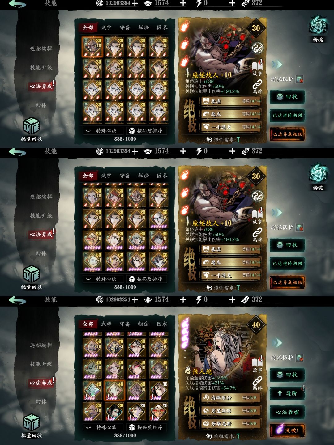 由于没有霸体破甲会被打飞推荐带古蜀回甲,没有黑白全靠技能自带的恢复推荐带戏语增加恢复量