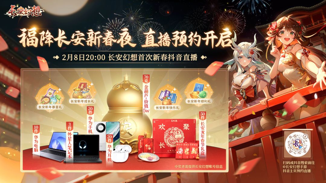 2月8日20:00,抖音@长安幻想手游 首次新春直播重磅来袭!