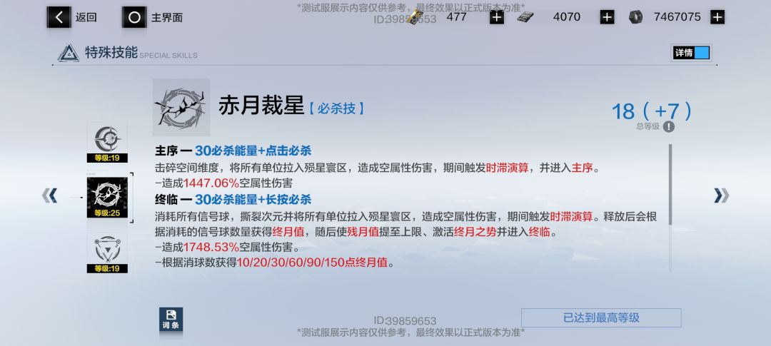 主序形态下的终焉在开启大招后将消耗所有终月值增幅此次大招的伤害,并变回初星形态。