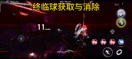 终临形态下的终焉无法获得信号球,但每次释放普攻或长按普攻并释放(秒蓄)时都将获得终临球,消除终临球可以获得残月值(核心条)、终月值(核心条下方数字)和能量。
