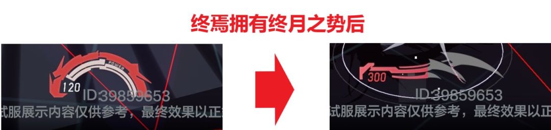 终焉在拥有终月之势后,核心条会由月轮状变为羽翼状。