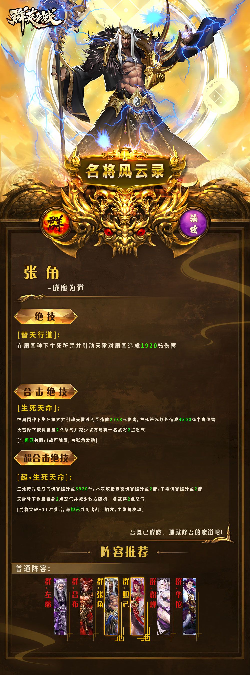 无双金将 ▎张角 技能介绍✨