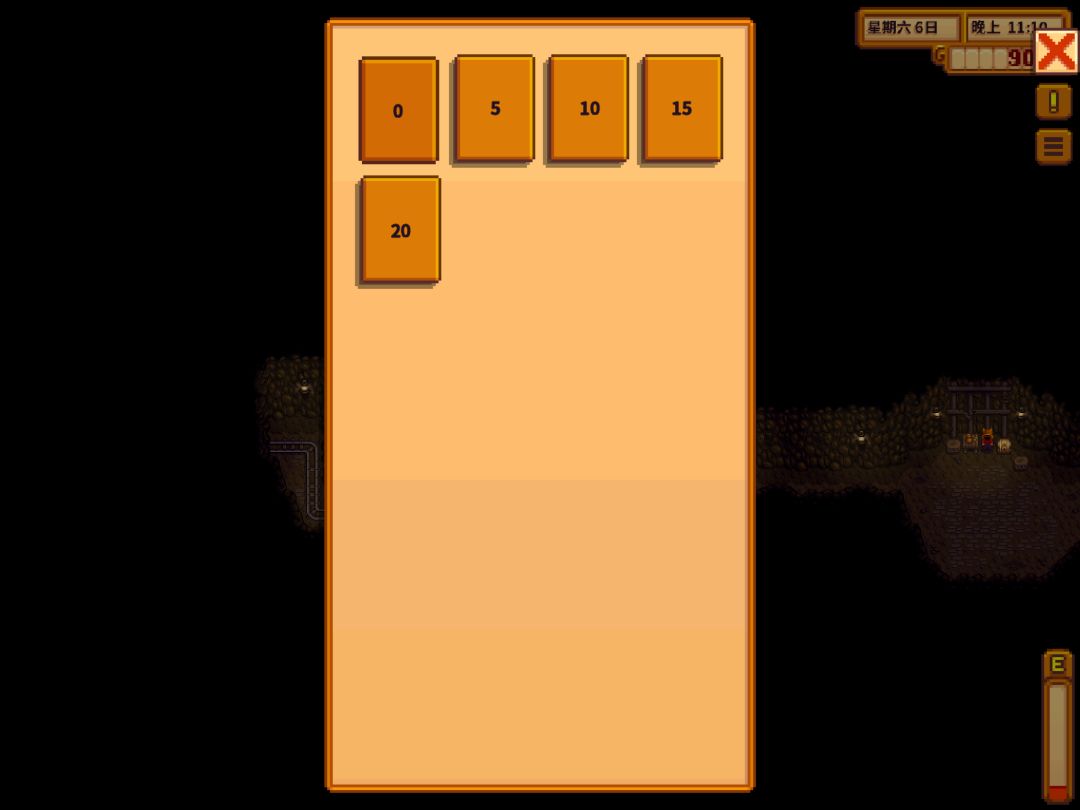 春六:普运,因为作者受不了钓鱼,加上防风草熟了,先去皮埃尔那升级背包,在买15个甘兰种子回家与之前割草爆的混合种子种上,之后下矿,冲到20层回家睡觉,成果见图6