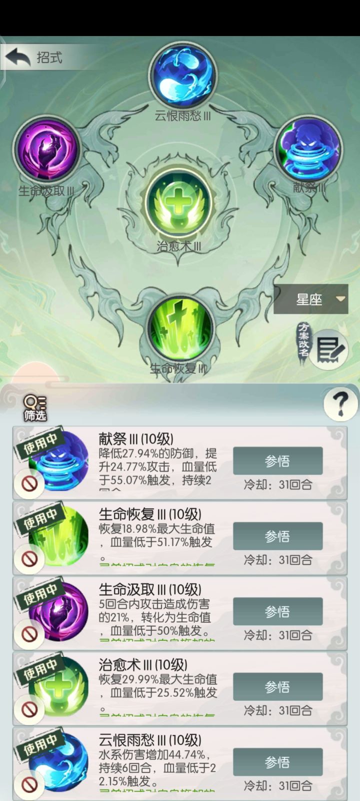清风剑诀我用了5级主五图谱,眨眼剑诀用2级主五图谱,在主五法则的加持下,这两个技能回血很可观了,保证自己存活问题不大