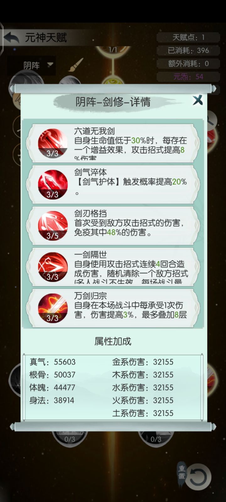 下周又开始仙盟战,就没有把阴阳境改为阴50,但其实不重要,只要自己伤害上去了,怪回的血就不够看了,只是改成阴50更好打一些。方案配置:神通-鬼圣,剑胎-纵横。