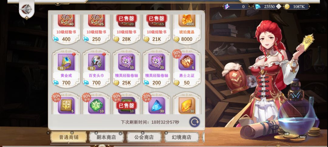 2商店。普通商店,每日经验书卖完,精灵突破书和敏捷普通书卖完。100钻刷新可以用,每天刷到200钻出来的时候停。刷到所有角色到90级停,不要再钻石刷新了。对了,好感度礼物买。后面商店也简单,根据自己的阵容拿本体卡即可。