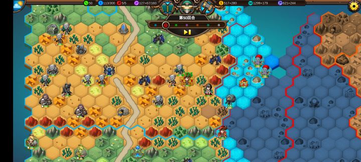图为天使15在50回合的截图,地图设置是开了雇佣兵其他龙这些都关了。开了通行证,地中海。种族是不朽对抗其他所有族。可以看到50回合基本上已经把所有族都赶下水了,但是一家没灭。这在其他战术下对抗5族基本上是不可做到的,但是回城流还是可以。