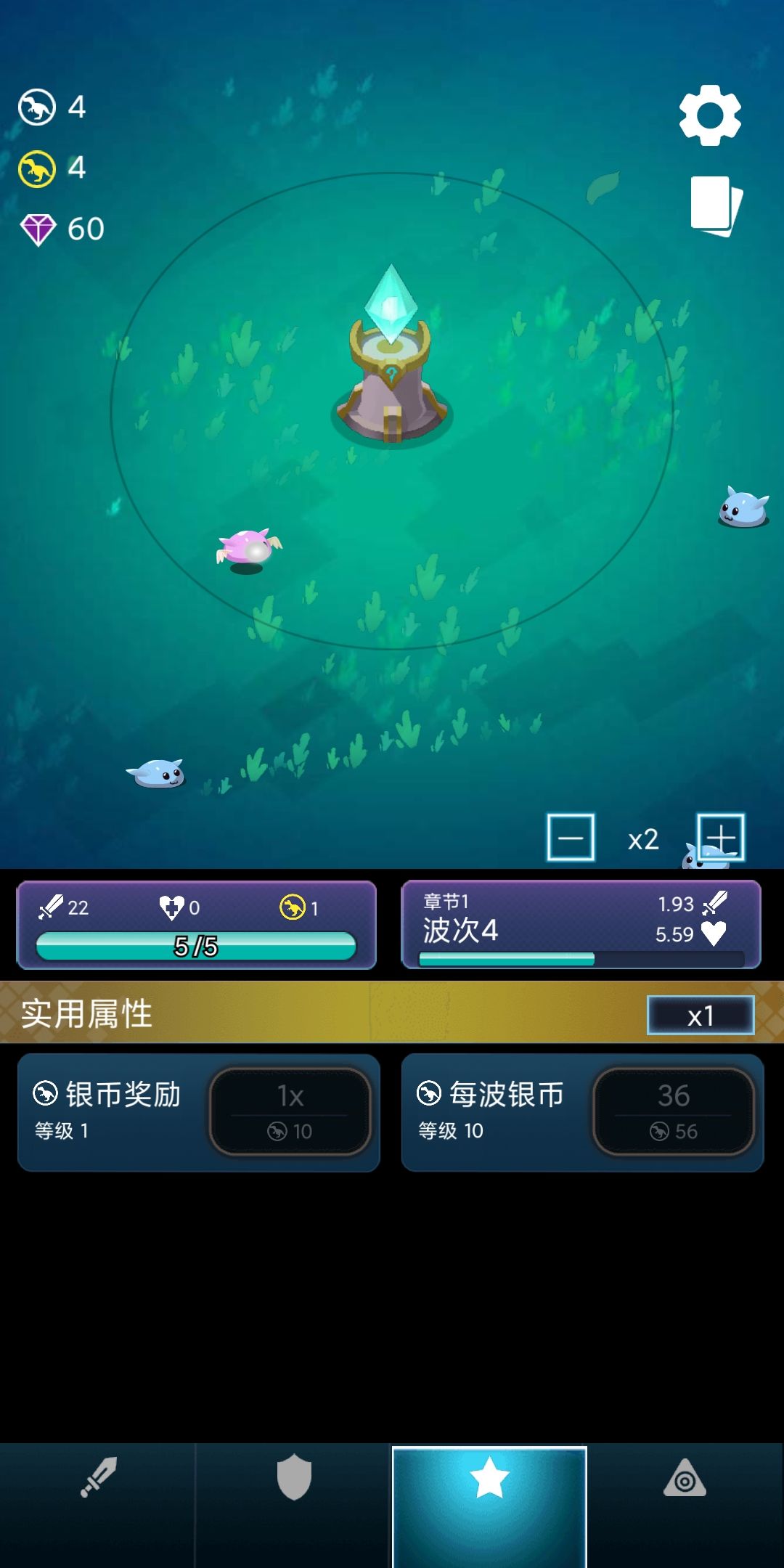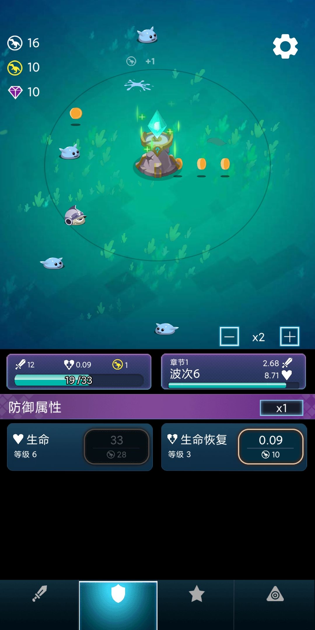 5)第三次战斗,在波次4之前,把“每波银币”提升到36以上,之后平衡升级其他属性,就可以达到接近20波,甚至直接通过20波(如果一次失败了,工坊继续升级“每波银币”即可)