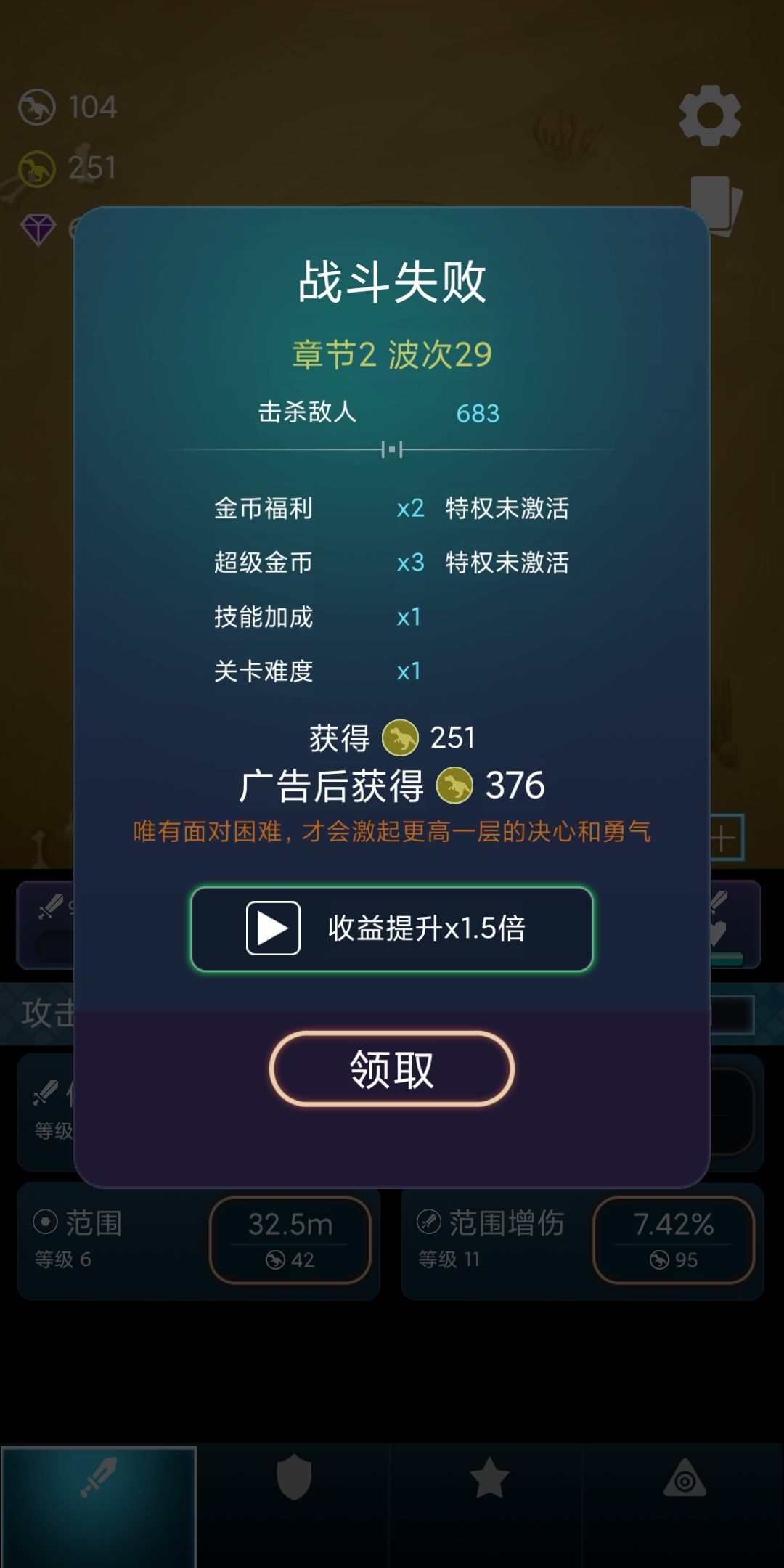 金币副本可以获得大量金币,看广告可以翻1.5倍