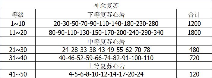 目前复苏材料产出:数据按照复苏20层每天免费加钻石扫荡共4次,帝国每期三星全通关产出计算。