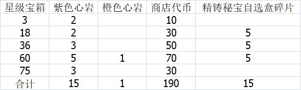 - 星级挑战能打满最好,实在不行就保60星,75星奖励没有橙色心岩