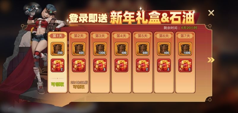 您可在活动期间内进行游戏登录领取相应奖励,7日连续登录总计可获得石油*4000、新年礼盒*15。