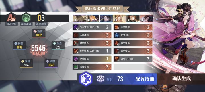 最后除了体质,其他基本都能在1000左右。双千的攻击和专精,再加上终端的125%的攻击加成,白鸟梓一个技能能稳定在1500万左右。