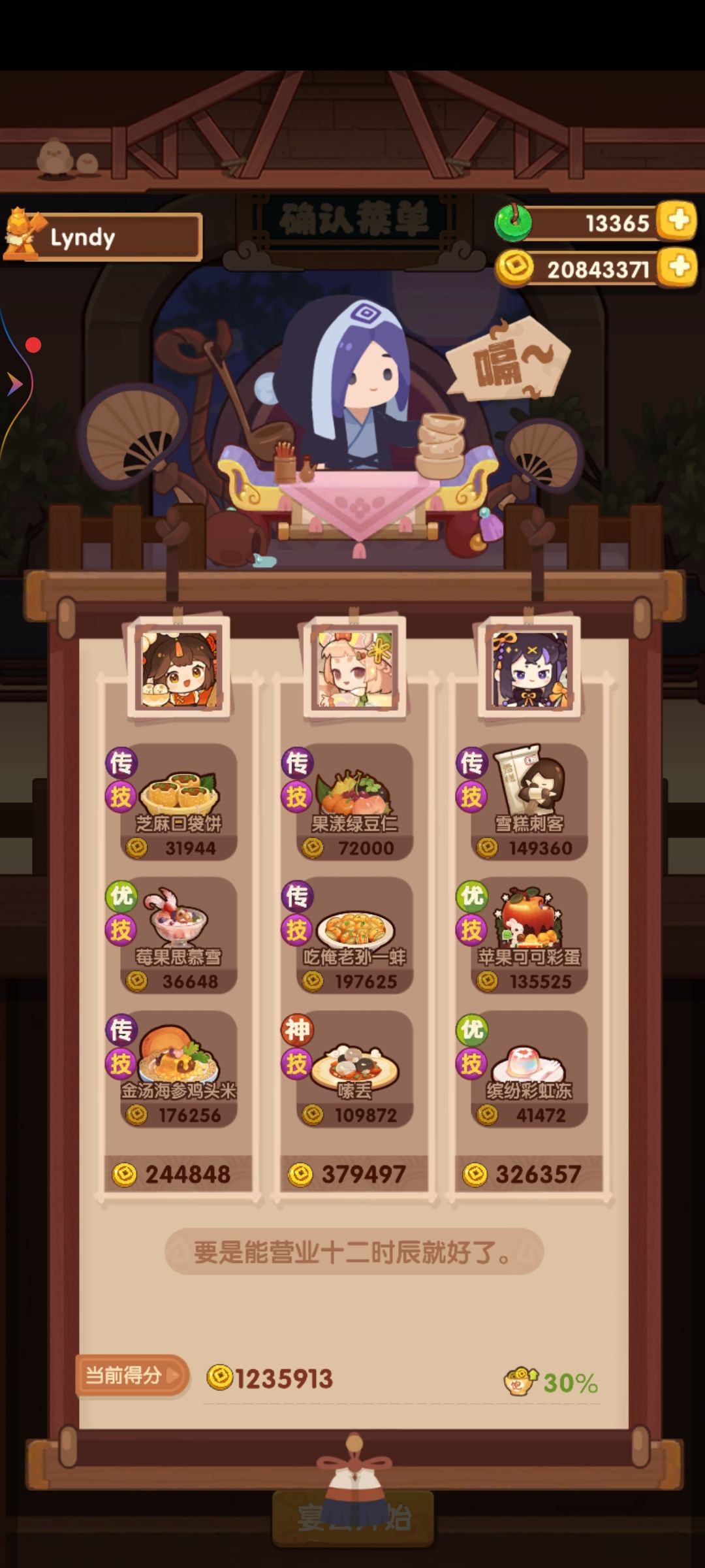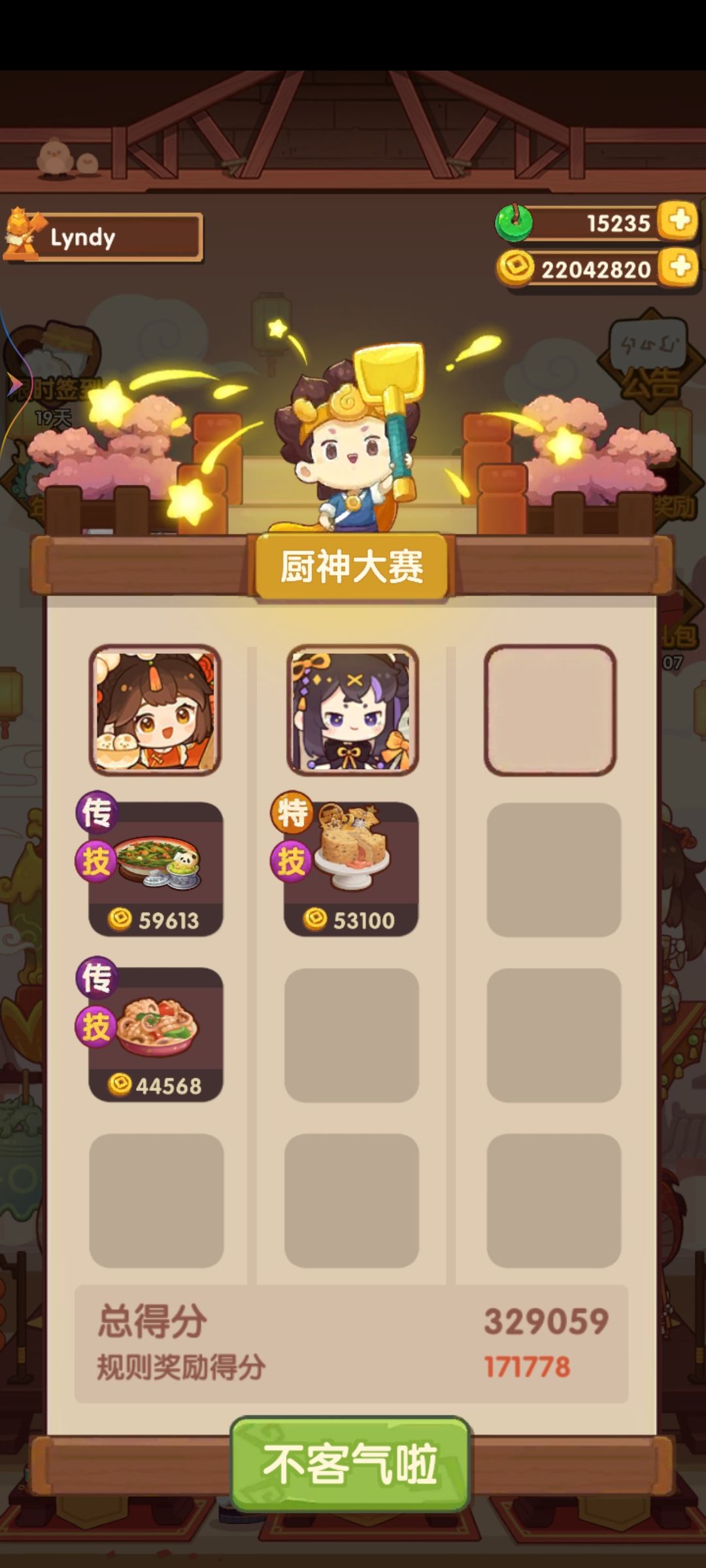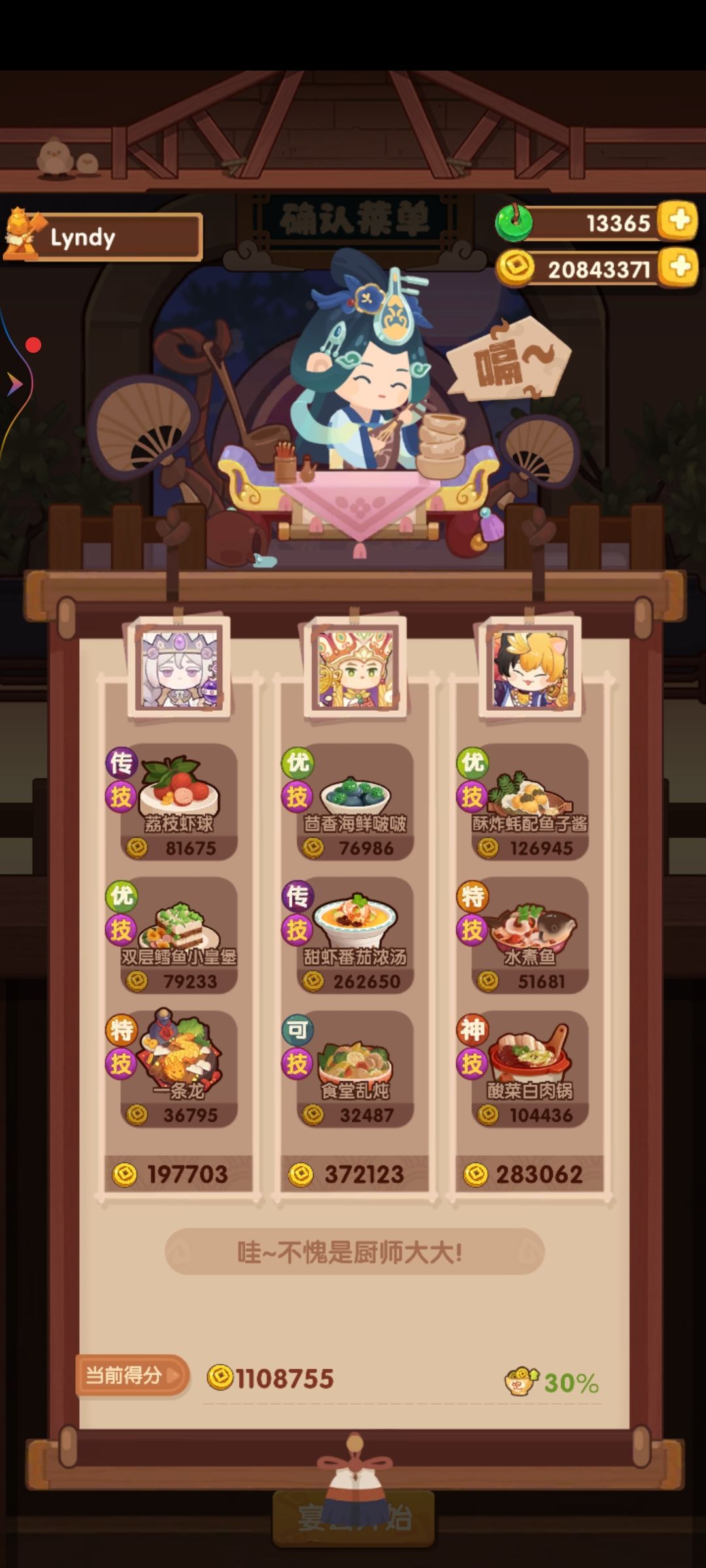 厨神比较容易,全高,大号76w,小号三菜高保。桂小乌值得表扬,双绿槽厨师,既能下地,又能做炒烤菜。