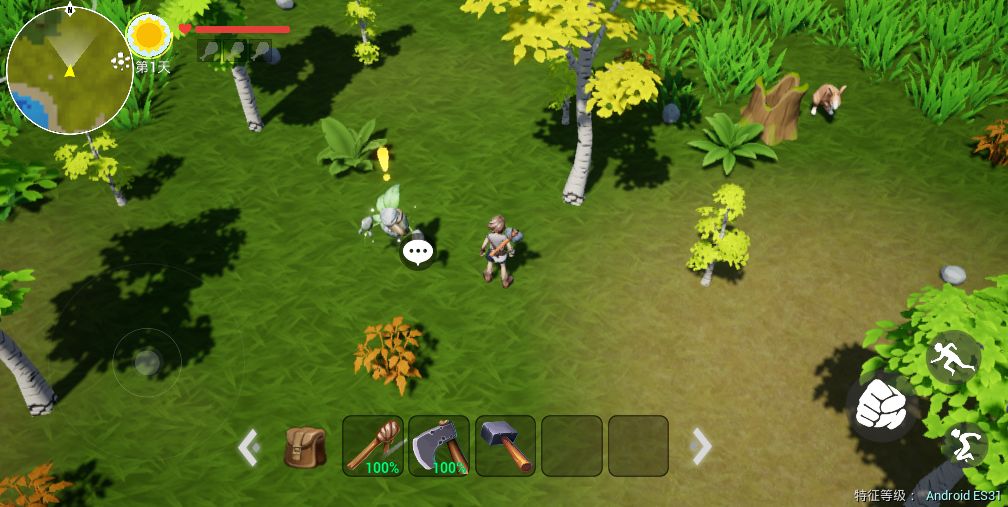 ◆ 草地动物生态由蚊子、兔子、雌鹿、雄鹿、狼、野猪构成,其中蚊子藏在灌木中,灌木被破坏才有几率出现;兔子、雌鹿很警觉察觉到有人靠近就会躲进洞里或者逃跑;雄鹿、狼、野猪都会主动攻击角色,前期战斗的时候注意走位都可以处理。