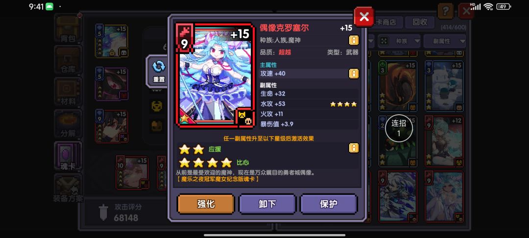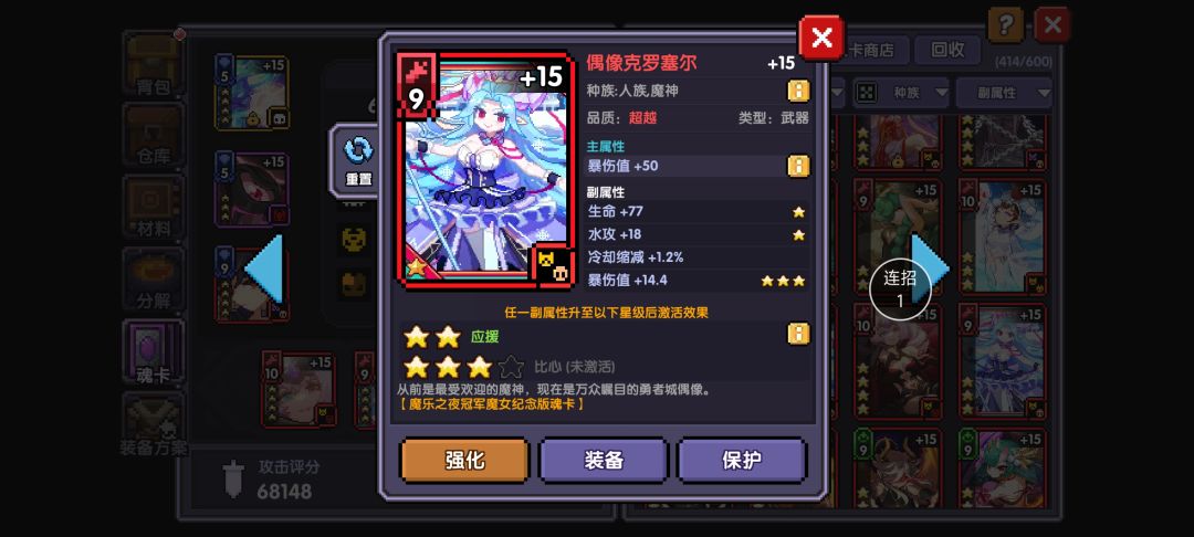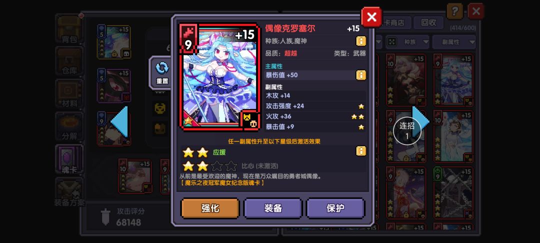 另外打卡签到254天,买了7期执照偶像的30魂卡加起来210+金币买61张+100钻石四属性n张+从开始玩就把重置卡给爆伤偶像,至今没出一张爆伤偶像,哪怕护甲生命的副词条四星都没有,只有一张攻速卡。等看一下新年活动有没有粉钻机在氪个执照在冲30张,没出就给🐶🐸上香了