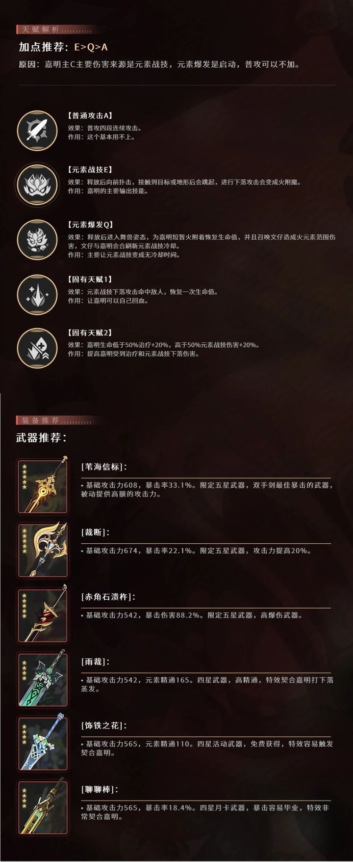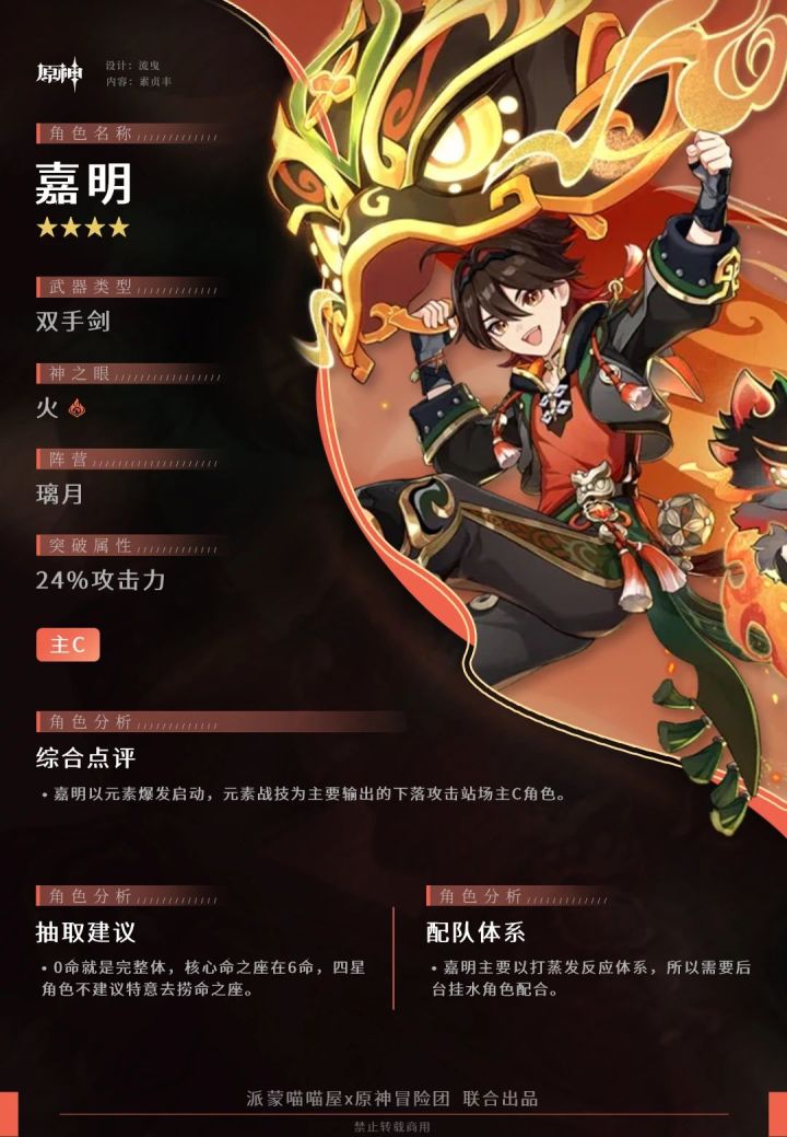 作用:提高嘉明受到治疗和元素战技下落伤害