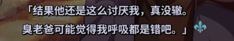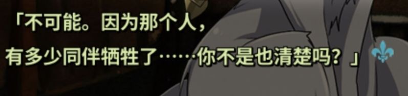 6、性格大变的原因。大概率是菲由被控制了,在麟的短剧中,菲由知道到了斯库尔出于好意告诉麟去向亚玛尔要角后,以为自己计划一定成功说出了“要把幸歌珍视的东西破坏的体无完鳞”,截屏如下