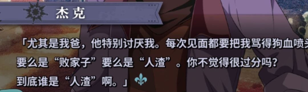 这个杰克倾向于用力量来领导,作出了些出格的事从而导致了一场悲剧。而在短剧菲由口中他有一位父亲,莫名讨厌菲由,不过十分有钱,截屏如下