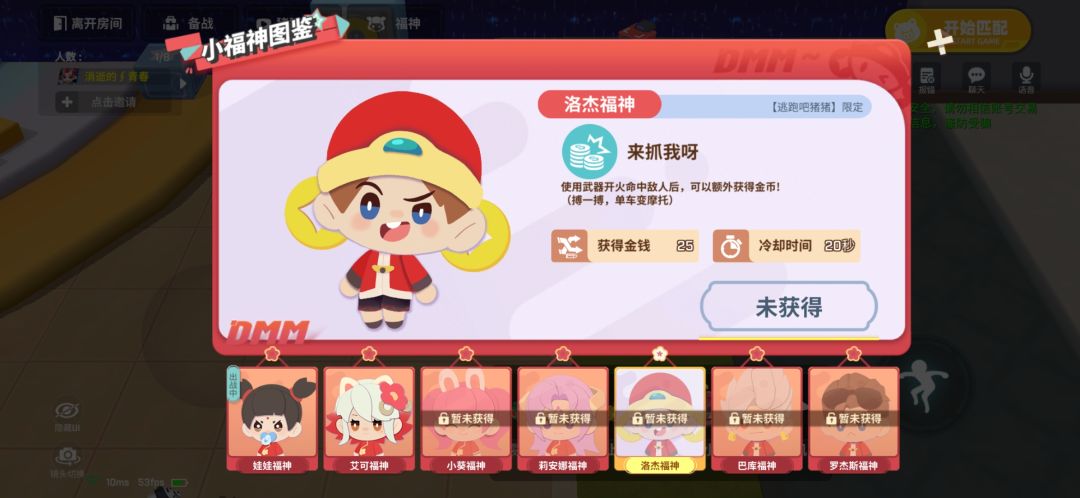 当点击逃跑吧猪猪模式时,会进入备战房间,点备战可换角色和道具卡