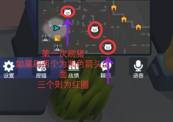 开局第一次刷猪有可能会刷两只猪或三只猪.如果是两只猪一只在会左上角 一只在右下角 建议分工合作 左上角那只去三个右下去五个离得比较近 可以快速送猪,送完右下角再去帮队友吧左上角的送了