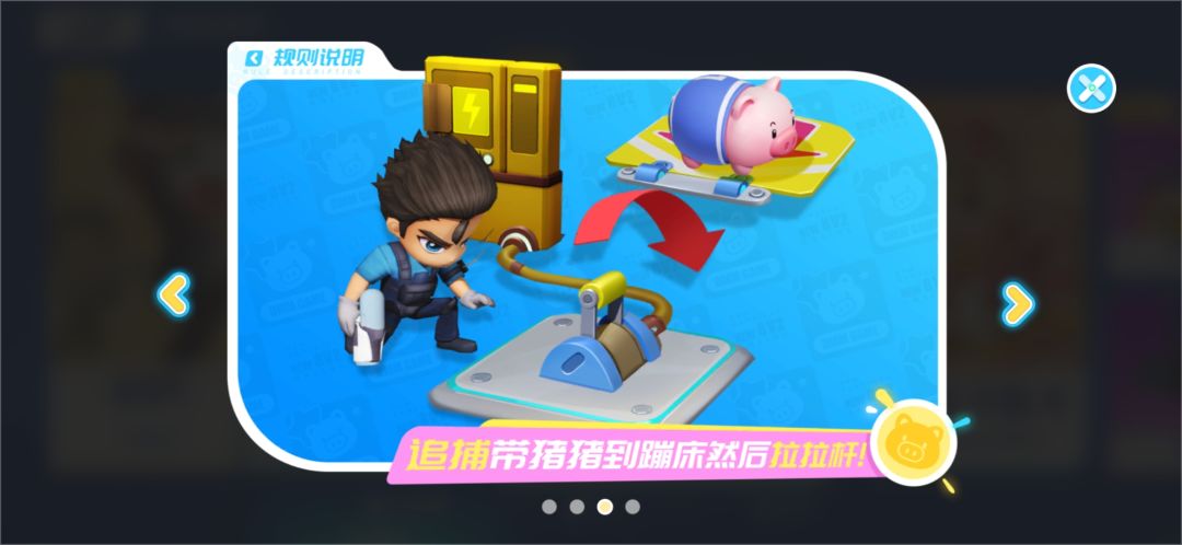 追捕需要把猪猪带到蹦床然后拉两个拉杆(送五只猪获得胜利)