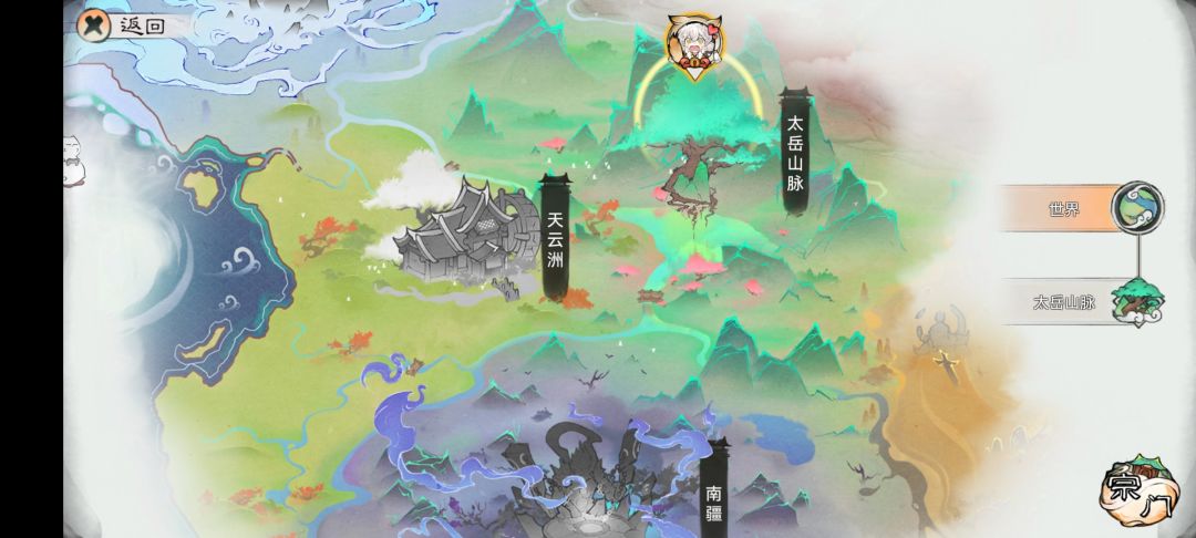 萌新进入游戏后一开始会从世界地图左下角进行开图剧情,祖师这款游戏拥有地图概念我非常喜欢,一般修仙游戏里层级低的只会有单纯数值玩法就是无聊打坐提升修为晋升突破,层级高一点的会有宗门系统给你玩玩,做做宗门任务等等。层级再高一点的会拥有大地图概念给你去闯荡交互。像祖师这样就非常好,一开始我们是在那个啥洲闯荡,视角拉升会显示洲地图详细信息,再点一下世界会看到其他大洲等待着我们去闯荡,这就非常丰富。