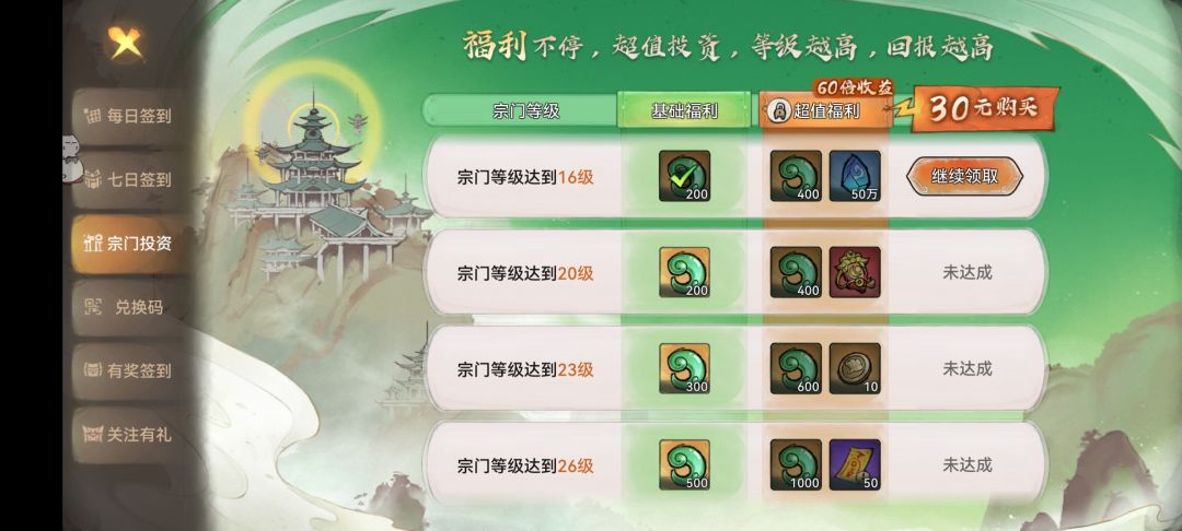 每次上线时会有一份宗门报告贴心给你看