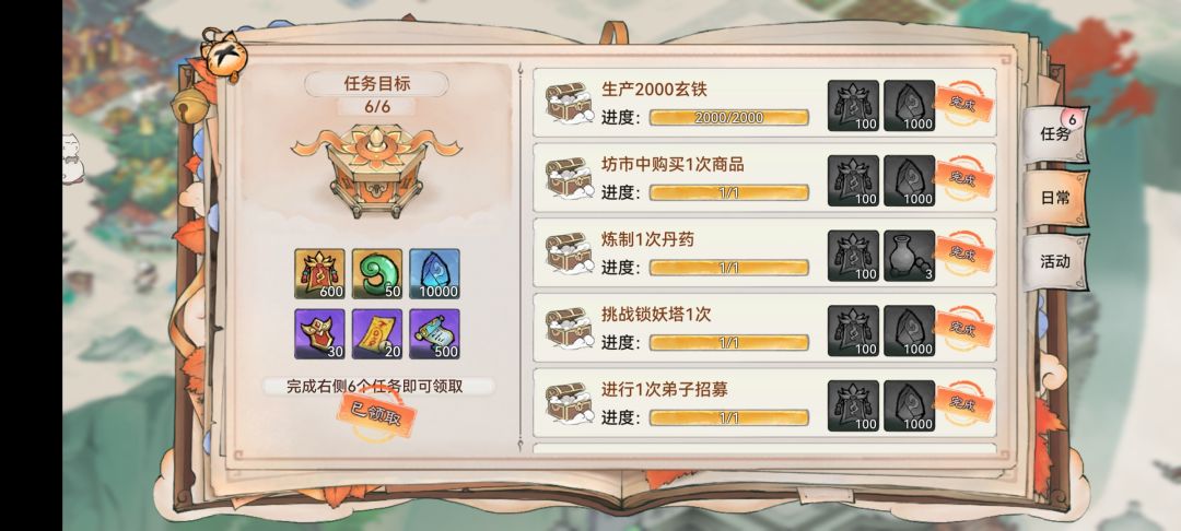 日常任务做完一天是有1600名声。