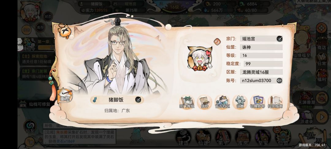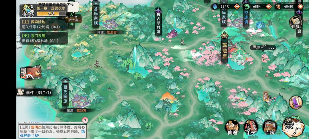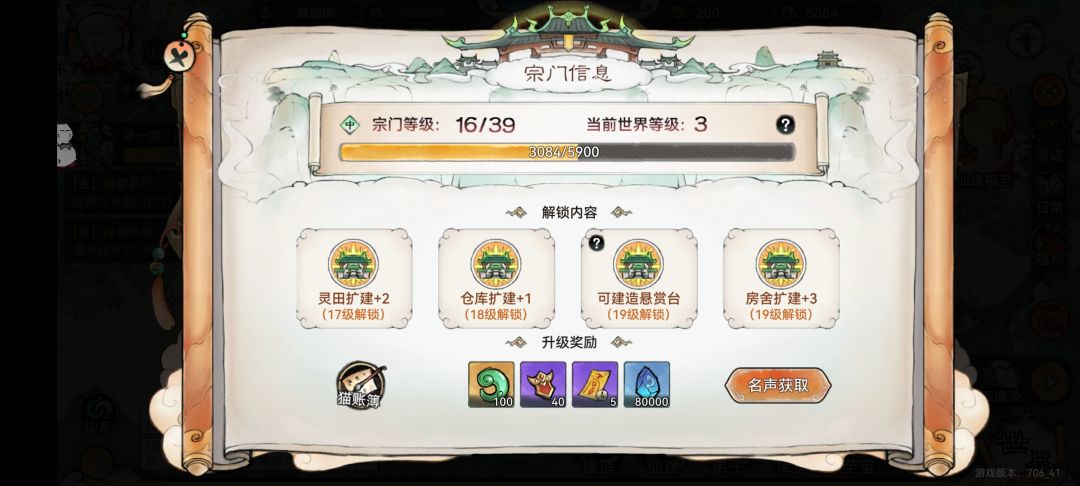 在做完开图剧情后我们跟着主线任务进行,非常简单,核心就是获取名声提升宗门等级。
