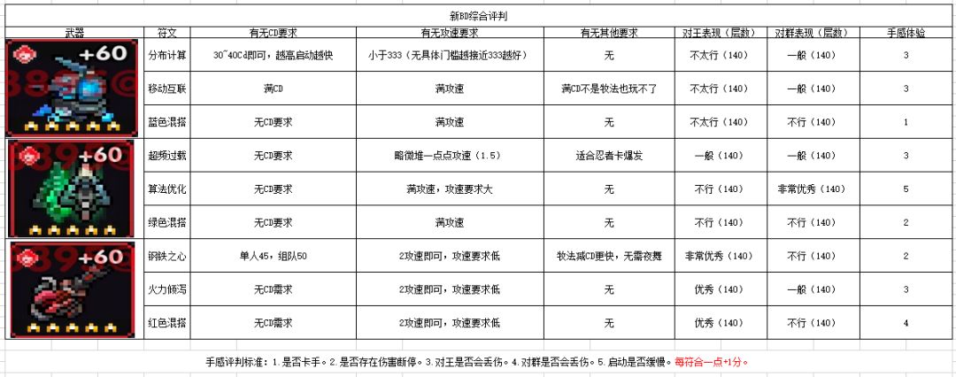 注:该表格仅针对游侠职业,其他职业不一定具有参考价值!
