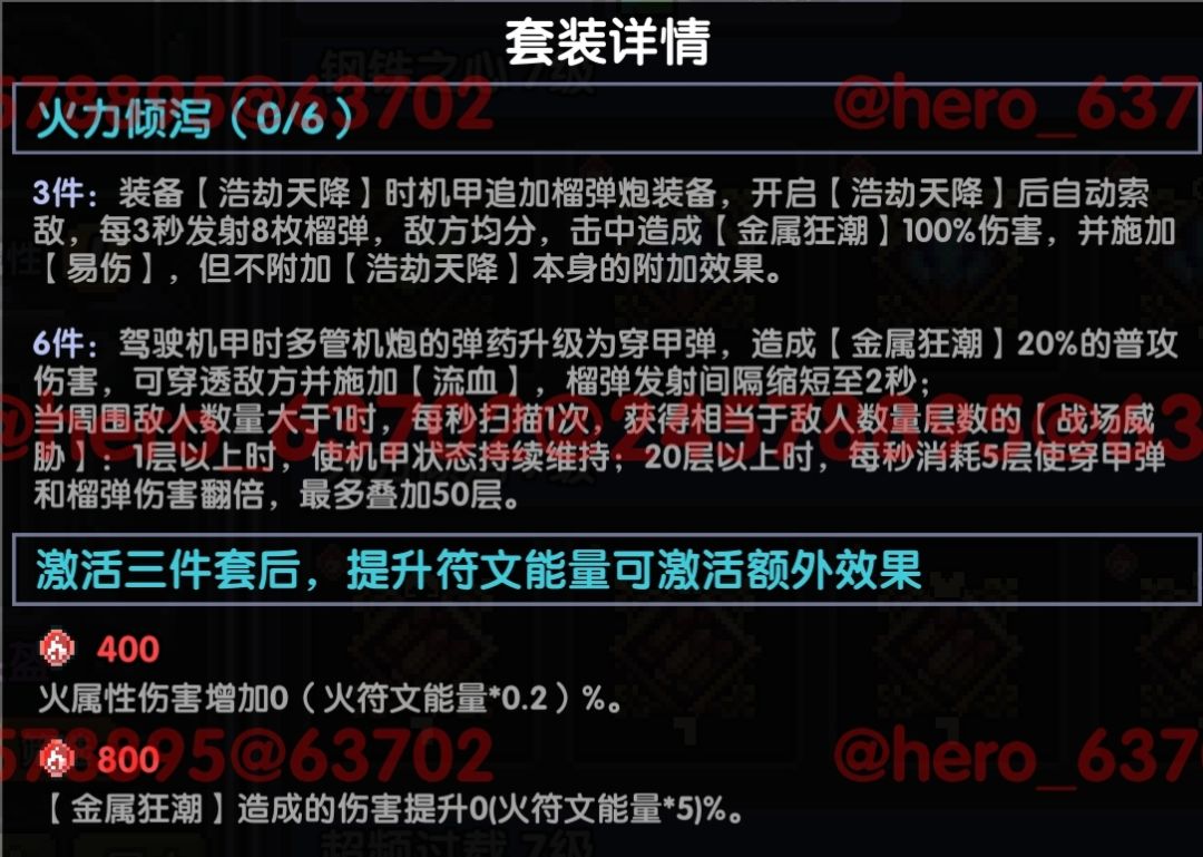输出节奏:开启【金属狂潮】上机甲,开启【浩劫天降】增加火力→普攻就可以了。