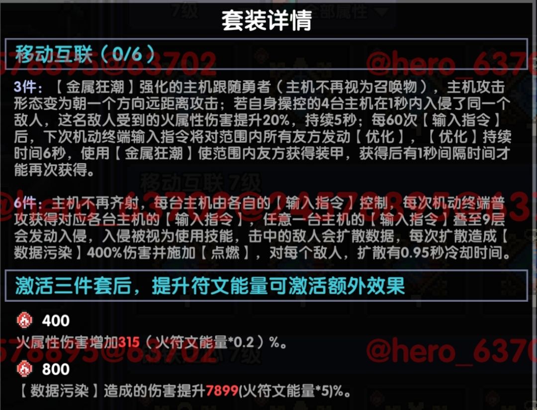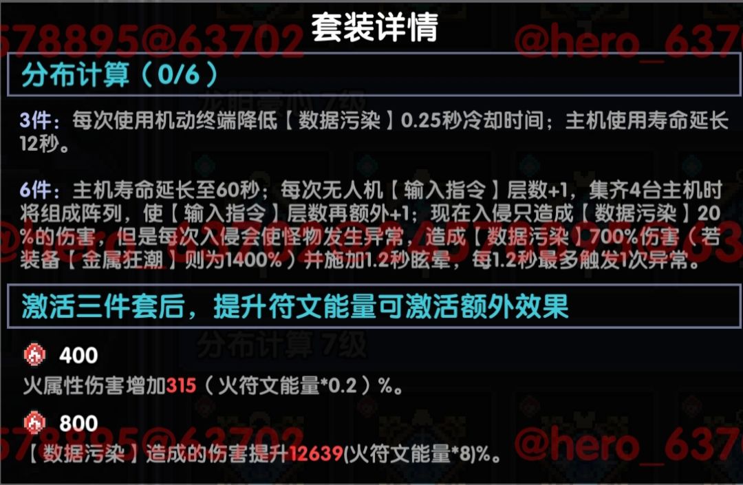 输出节奏:【数据污染】召唤主机至四台→四台主机施加20%火易伤→通过高额的属性伤害+技能倍率进行基础的【数据污染】伤害。