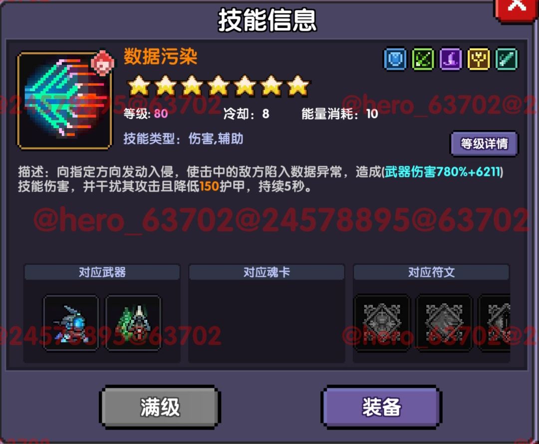 输出节奏:释放【数据污染】使攻速逐渐上限→降低【浩劫天降】CD,并通过高额的属性伤害和伤害倍率造成【浩劫天降】的基础伤害。