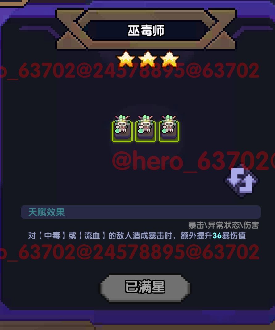 说明:后续天赋可以稳定挂中毒,故36爆伤可以稳定吃到。