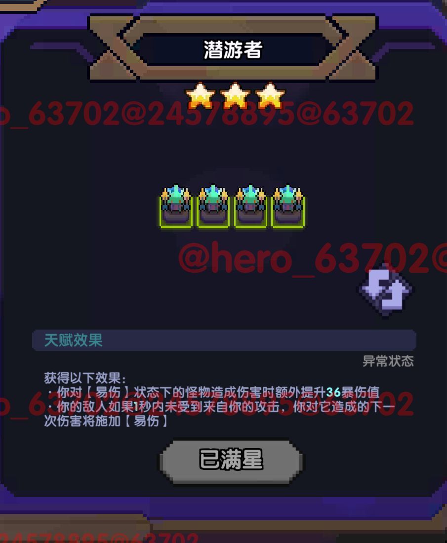 说明:对每一只新怪都可施加【易伤】,并触发36爆伤增益。