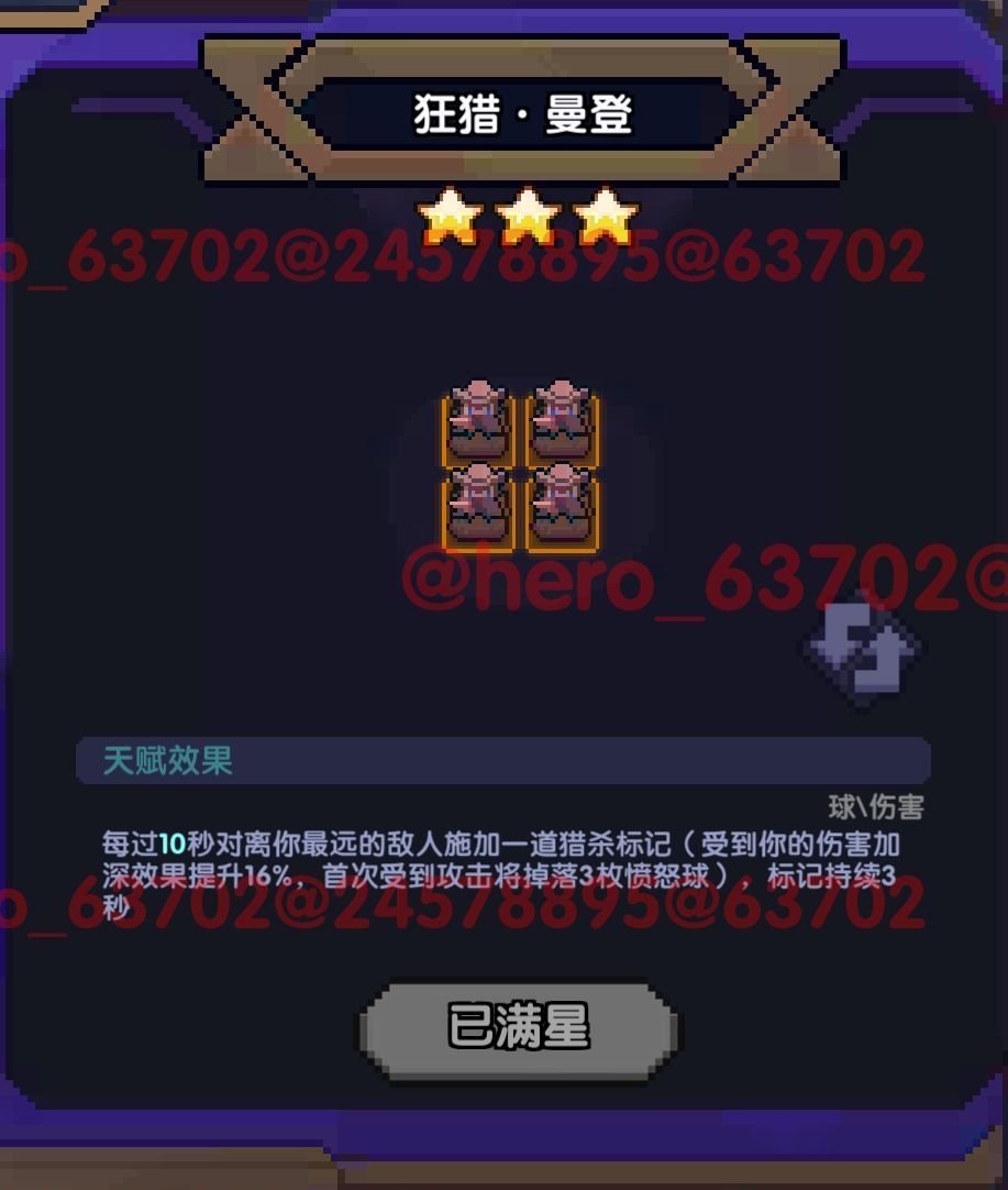 愤怒球:在攻击频率为1/2/3时,分别提供4%/6%/10%伤害加成,持续4秒,重复获得将延长持续时间,最多20秒;来源于不同的【愤怒球】可叠加(其实总共就俩)。