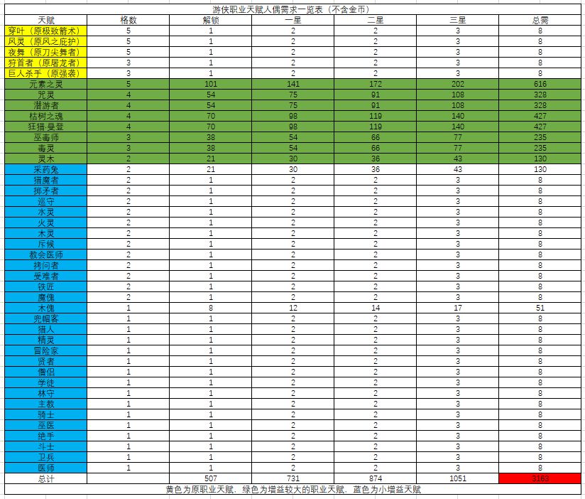 同原天赋(3300)相比,减少了137个,也就是比原来需求的人偶还要少了,所以不需要担心人偶不够(当然,后续还会增添新天赋,所以囤一些人偶是一个好习惯)。