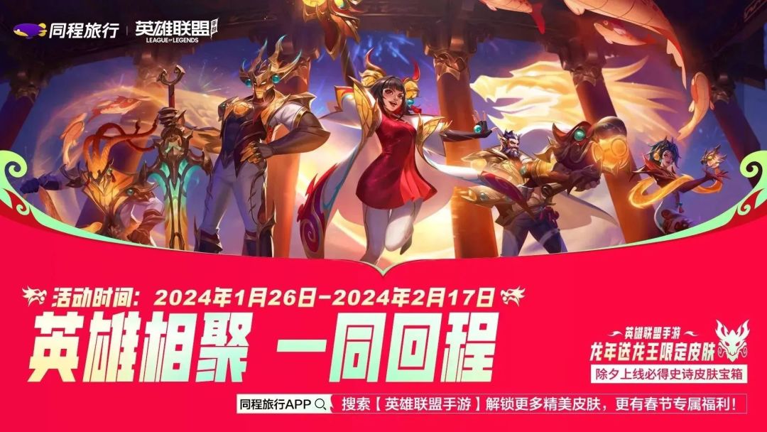 英雄联盟手游x同程旅行有机会抽取千元机票、免费酒店、景区门票以及精美皮肤!