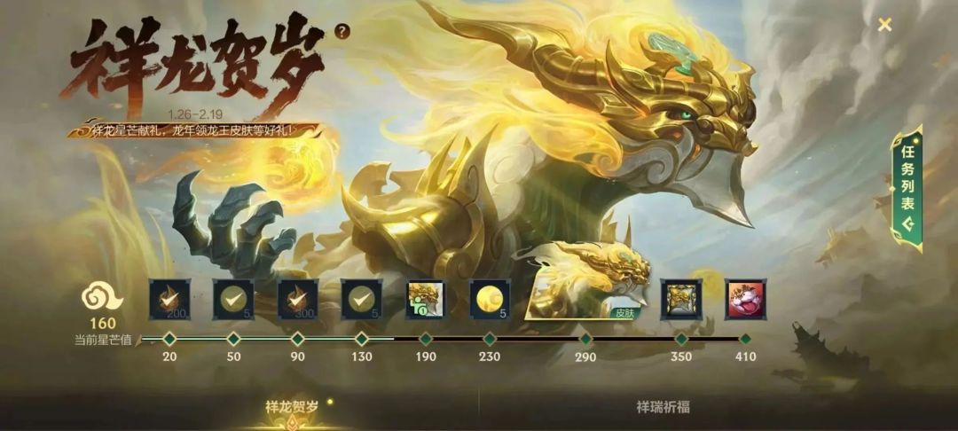 每天完成任务,最快在2月9日(除夕)免费领龙王皮肤!