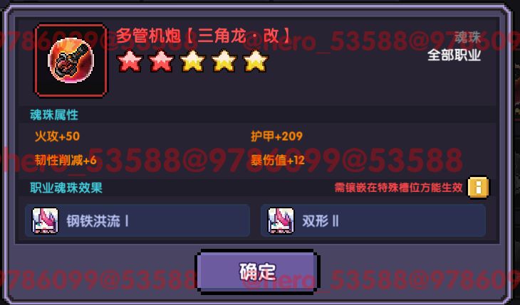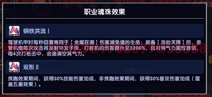 【4星效果】 全金属被甲弹:多管机炮被强化(每次攻击射出5发子弹,基础伤害为【金属狂潮】3%,为普攻伤害,继承技能的星级和等级)。